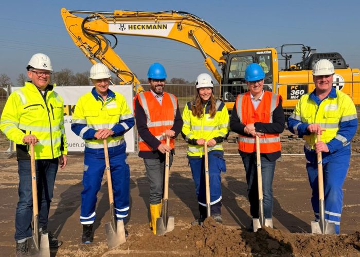 Im Auftrag der Westnetz GmbH führt Bernhard Heckmann die Hoch- und Tiefbauarbeiten für die neue Umspannanlage Schmintrup in Werne aus. Am 04.03.2026 wurde der Start mit einem traditionellen Spatenstich gefeiert.