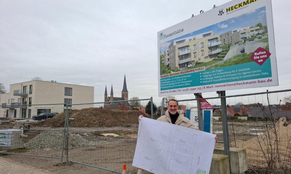 Der Bau der öffentlich geförderten Wohnungen im Baugebiet Rosenhöhe durch Heckmann Bauland und Wohnraum hat begonnen. Geplant sind 28 Wohnungen auf zwei Gebäude verteilt, jeweils mit 2 bis 3 Zimmern und einer Wohnfläche von 60 bis 90 m². Parallel zum Baustart der beiden Gebäude startet auch die Errichtung der Tiefgarage. Die Bauzeit wird auf etwa zwei Jahre geschätzt – bereits jetzt melden sich viele Interessentinnen und Interessenten bei Heckmann.