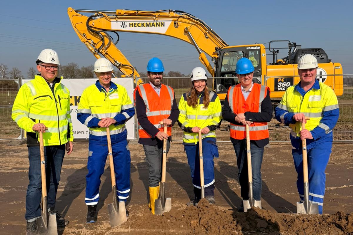 Am 04.03.2026 fiel der offizielle Spatenstich: Im Auftrag der Westnetz GmbH führt Bernhard Heckmann die Hoch- und Tiefbauarbeiten für die neue Umspannanlage Schmintrup in Werne aus. Wir tragen den Oberboden ab, errichten die Fundamente in Stahlbetonweise und das neue Betriebsgebäude.